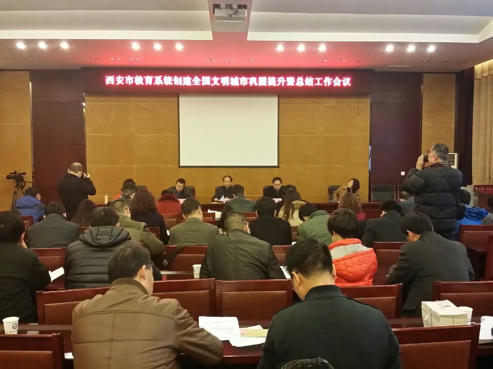 1月20日,西安市教育系统创建全国文明城市巩固提升暨总结工作会议在西安文理学院召开。市教育局巡视员张创荣、市文明办未成年人思想道德建设处处长李军、市文明办督导6组副组长杨联、市教育局体卫艺处处长杨新排、市教育局创文办主任孟瑀出席会议。市属四所高校、各区县教育局及各直属学校负责创文工作的同志参加了会议。会议由杨新排主持。