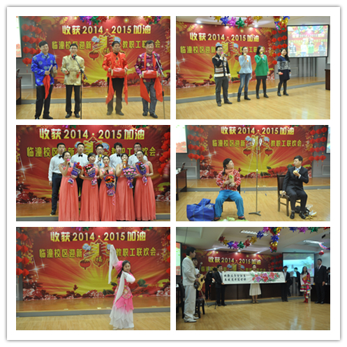 为不断营造健康向上、温馨文明的校园职工之家氛围,让教职工共贺新春快乐喜悦,同畅新年美好祝愿,1月8日,临潼校区全体教职工和部分学生代表百余人欢聚一堂,举办“收获2014·2015加油”迎新春教职工联欢会。