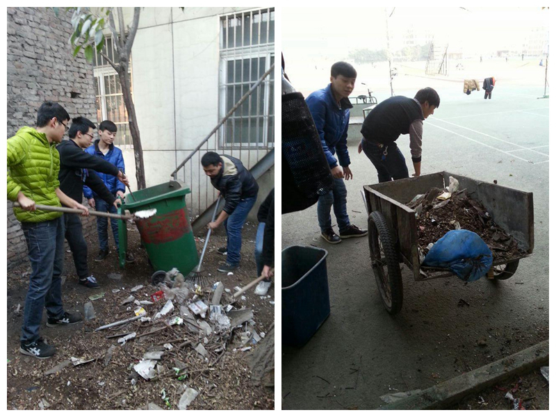 1月9日下午,电子信息系铁道通信信号专业011611班20余名学生,在辅导员杜月侠老师的组织带领下,科学合理安排,安全有序地协助我们对该处进行了彻底地报废桌椅清理搬运、堆积多年的树枝落叶打扫清理。同学们冒着寒风,不畏寒冷,不怕苦、不怕脏,你争我抢,有的同学甚至手都磨出了泡,也不停歇,将卫生死角彻底打扫干净。