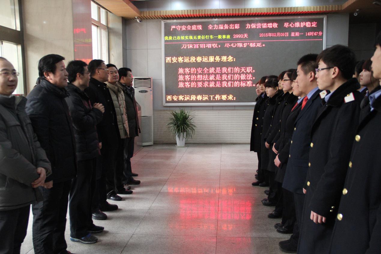 2月9日下午,学院副院长邓耀斌在教务处和部分系部领导陪同下,来到西安铁路局西安客运段看望了我院参加春运顶岗实习的部分学生。