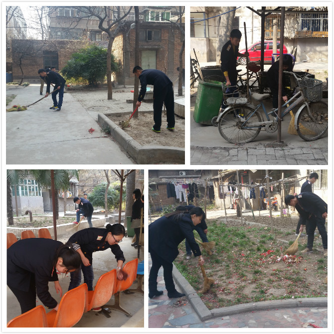 3月11日,电子信息系学生会干部54人迎着和煦的春风,穿着统一的服装,迈着整齐的步伐来到学院家属院,对家属院广场、楼道、楼梯、墙面、花坛等区域进行全面打扫。
