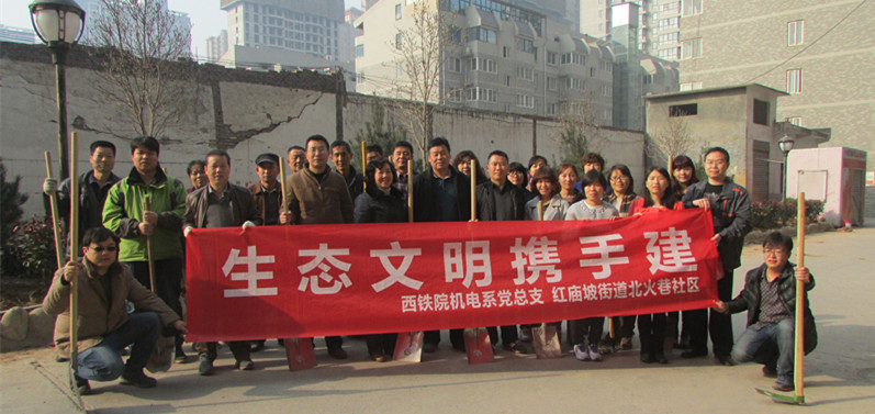 为推进党员深入社区为群众服务活动常态化、长效化,在第37个植树节来临之际,3月12日上午,机电工程系教职工党员在党总支书记张雅兰、系主任代礼前的带领下前往对口联系的北火巷社区参加了“生态文明携手建”义务植树活动。