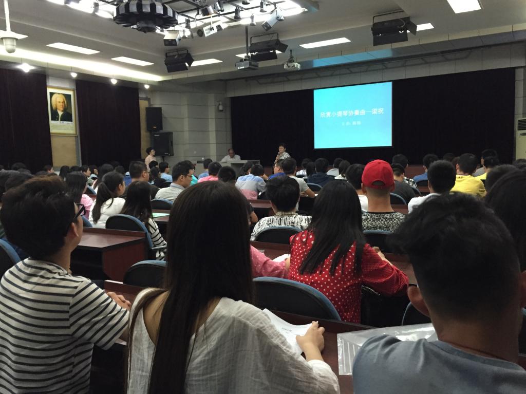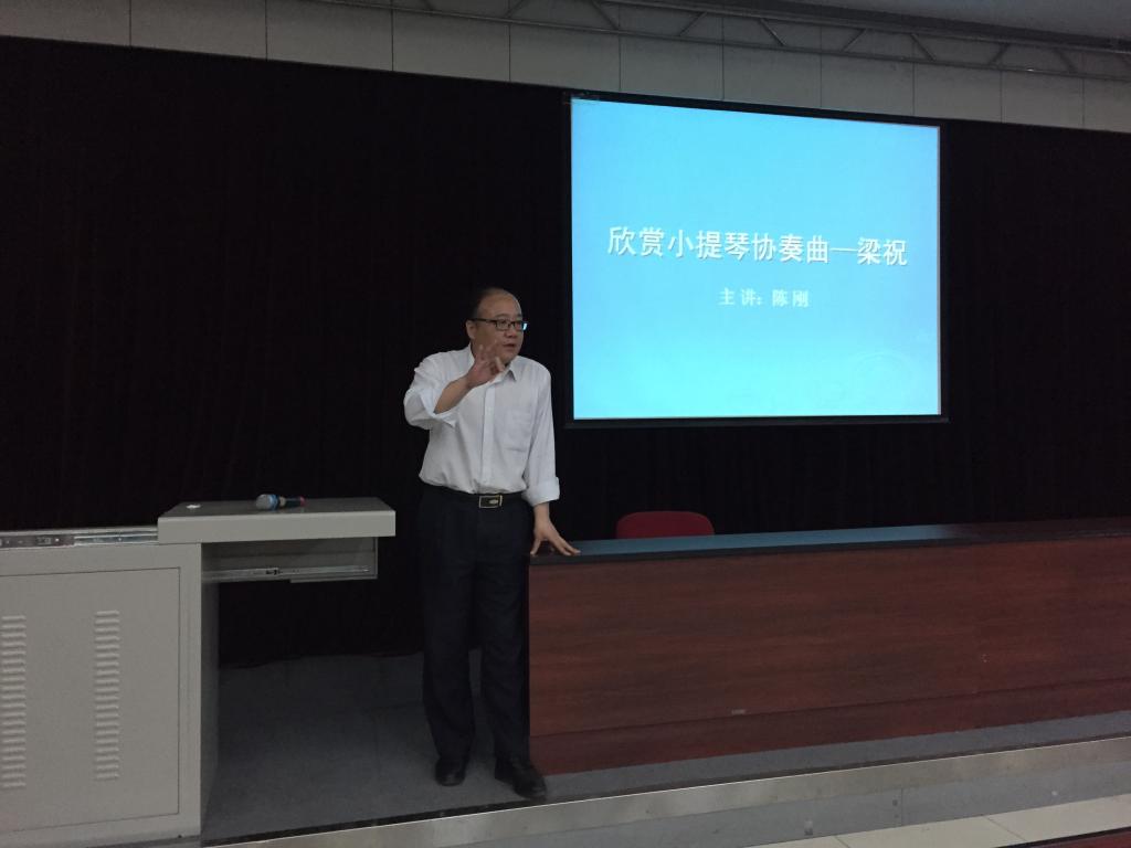 本次音乐欣赏讲座邀请交通运输系辅导办陈刚老师主讲,他以描写梁山伯与祝英台勇敢忠贞的爱情故事的小提琴协奏曲《梁祝》为范例,从音乐欣赏的三大要素讲起,对乐曲进行了深入浅出的分段解析。现场气氛宽松愉悦。