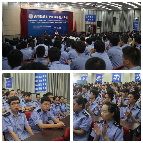 5月13日下午,由电气工程系、党委宣传部共同主办的西铁院大讲堂在阶梯教室举行,本次报告特邀全国劳动模范、党的十八大代表,中铁一局集团电务公司电力工高级技师窦铁成同志为大家做《在平凡的岗位上做出不平凡的业绩》主题报告。