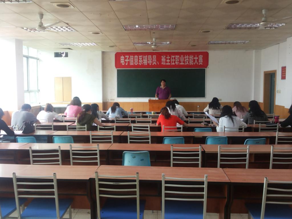 电子信息系启动的第一届辅导员、班主任职业能力大赛,旨在通过笔试、主题班会、主题演讲、案例分析、谈心谈话五个环节,丰富和提高辅导员、班主任职业修养和专业素质,增强其职业自信心和归属感,推动其自身职业的发展。接下来将进行主题班会、主题演讲等环节。