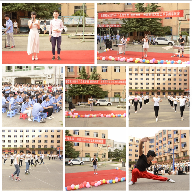 为进一步推进校区学风建设和校园文化建设,展现学生朝气蓬勃的青春风貌,努力拓展学生素质,不断丰富和活跃校园文化生活。自4月底以来,龙首校区在学生中开展了2015年校园科技文化艺术节活动,活动历时一个多月,于6月初圆满落下帷幕。近日,艺术节闭幕展演活动在校区前操场举行。校区党总支书记郭小莉、主任吴领合、副主任孙明魁、马建萍,以及相关科室负责人、辅导员、班主任及学生观看了表演。