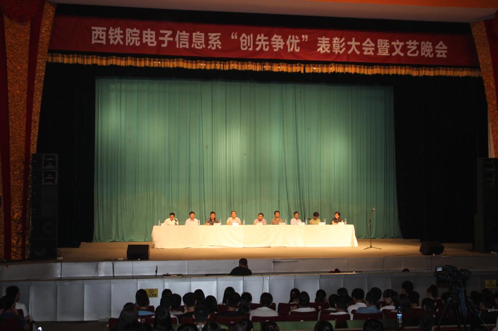 6月30日下午,电子信息系“创先争优”表彰大会暨文艺汇演在西安铁路文化宫隆重举行。学院党委副书记、纪委书记黄家昌,副院长邓耀斌、党委组织部部长任治军、党委宣传部部长张家琪、学生工作部部长卢进安、教务处处长滕勇、团委书记仵崇智、电子信息系主任孙津平、系党总支书记张伟敏、教务处副处长徐小勇出席并在主席台就座。系全体辅导员、班主任、学生代表1000余人参加了大会,大会由系张伟敏主持。