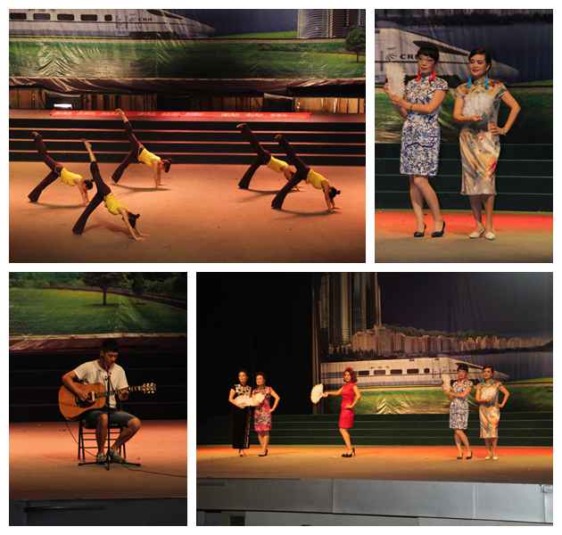 表彰大会结束后,在富有青春活力的舞蹈《Timber》中拉开了本次文艺汇演序幕。演出由15个节目组成,既有学生的广泛参与,又有教职工的倾情奉献,形式多样,内容丰富,既有歌舞、相声,又有朗诵、大合唱、时装秀。大合唱《共筑中国梦》被学生们演绎得恢弘磅礴,大气不失温婉,细腻中饱含深情,朴实的文字和动听的旋律勾勒了实现中华民族伟大复兴的宏伟蓝图,相声《如此学问》各种方言频出,爆笑不断,活跃了现场气氛,器乐弹唱《再见吧 喵小姐》优美的旋律,清新的风格,将观众带入了一个安静、纯真的世界,张伟敏书记的独唱《美丽的高原红》,勾勒出一条草原风光之旅,走秀节目之古装组、晚礼组、旗袍组,用不同风格的服装展现了不同时代对美的追求,特别是旗袍组走秀是由孙津平、教务处副处长史艺红、龙首校区副主任马建萍、院工会办公室主任王润霞以及马荣为大家呈现,她们行走时候的飘逸,若隐若现的风情使得大家都着了迷,给人一种俏丽的感觉,呈现出了女性婀娜的身姿,绽放出了自己的美丽而又丝毫不显得张扬。文艺汇演在城轨控制1301班的《友谊地久天长》的歌声中圆满落下帷幕。