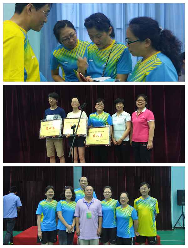 来自陕西省14所高职高专、民办院校、独立学院代表队以及30余所普通高校的50位图书馆领导,近200名运动员参加了比赛。根据赛会规程安排,此次比赛分为团体赛和馆领导单项友谊赛两个项目。团体赛各队队员们纷纷使出浑身解数,攻守转换,扣人心弦、激烈难当;馆长友谊赛亦是精彩迭出、博人眼球。来自省内图书馆界的同仁们在场上切磋球技、以球会友;比赛间歇,亲切交流,互相了解,呈现出了一片温暖、和谐的气氛。最终,经过小组赛和淘汰赛的紧张角逐,西安航空职业技术学院、陕西工业职业技术学院、杨凌职业技术学院代表队分获团体组一、二、三名。西北大学图书馆党总支书记雷震、延安大学馆长贾翠玲分获馆领导单项友谊赛男女冠军。西安翻译学院等6所院校代表队获得“最佳组织奖”。由袁素瑛、黄幼菲、赵惠、王红英、李静、姚彤、胥大男组成的我院代表队,不畏强手、敢打敢拼,获得了高职高专组团体赛第六名的成绩。