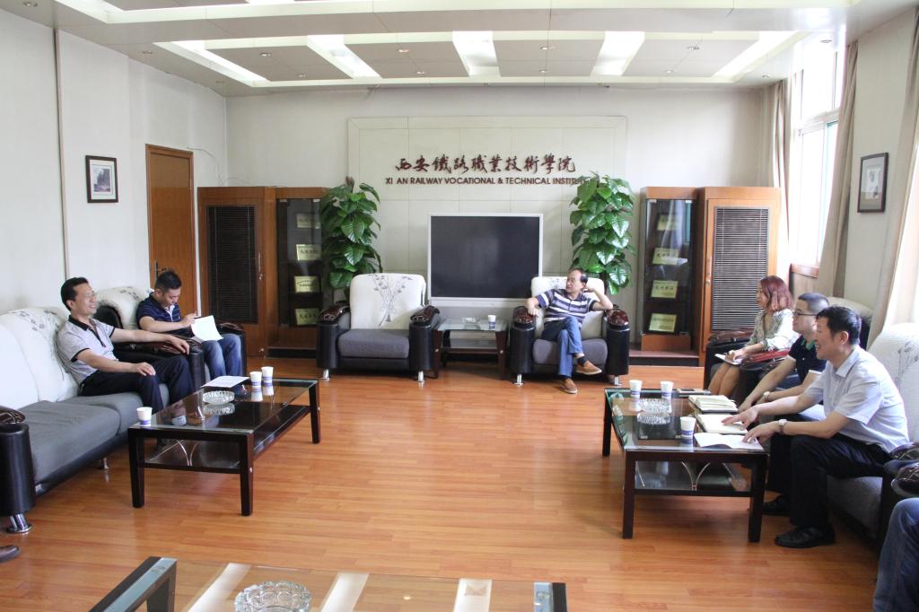 7月7日下午,西安车站副站长刘军、劳人科科长魏海英、客运车间主任石炜、售票车间书记祝明一行四人,来学院商谈学生顶岗实习工作。