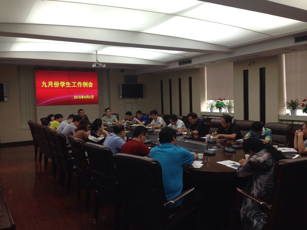 9月2日,学院党委副书记、纪委书记黄家昌在本部第三会议室主持召开新学期学生工作会,听取暑运实习学生教育管理、西安铁路局入职毕业生报到、大学生暑期社会实践等情况汇报,安排部署了九月份工作。