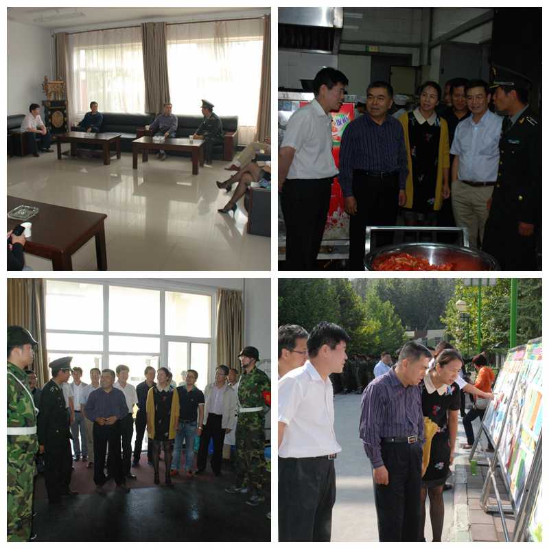 到基地后,黄家昌详细听取了军训团政委吴领合从“领导重视定军心,后勤保障稳人心,严格施训练恒心,学员投入表决心,教师工作有耐心,积极防控增信心,后期展望显雄心”等七个方面以及基地关于军训工作相关情况的汇报后,对2015级的军训工作给予了充分肯定。指出今年的军训与往年有所不同,要在坚持军训与学生养成教育相结合的基础上,按照教育部要求,坚持大力弘扬抗战精神的主题,通过适当的军事训练和丰富的文体活动,为大学新生上好开学第一课。基地领导高度肯定了我院严谨求实、扎实细致的军训团工作以及参训学员们昂扬向上的精神风貌,表示将继续科学施训、严格管理,圆满完成后续军训任务。随后黄家昌一行视察了学生宿舍、食堂和医务室等地,与部分学员进行了交谈,了解了军训学生的生活、医疗等情况,对各系部在紧张的军训期间创办的一块块精美展板赞不绝口,并向50余位驻地辅导员班主任表示了亲切慰问。