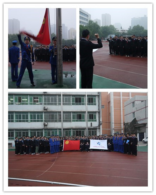 9月30日上午7点,院团委、院本部各系团总支、学生社团联合会共130余名团干和100多名学生在运动场聚会,国旗护卫队的同学们踏着整齐而矫健的步伐护送五星红旗到达升旗台,雄浑嘹亮的《义勇军进行曲》响彻整个校园,五星红旗冉冉升起,飘扬的国旗让全场师生热血沸腾,心中无比自豪。随后大家面向国旗敬礼、进行了爱国宣誓。