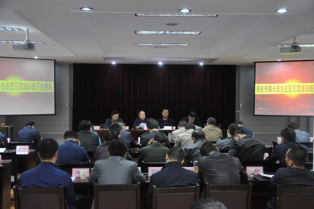 10月26日上午,西安市镇长街办主任示范培训班在我院临潼校区顺利开班。西安市委组织部副部长田周民做了动员讲话,学院党委副书记康敬远致词,临潼校区主任熊奇主持了开班典礼。参加开班典礼的还有市委组织部干部教育处处长李福海,干部教育处干部李秀娥,临潼校区党总支书记张国邦、副主任吴西蒙。参加培训的学员是来自西安市80名基层镇长和街办主任。