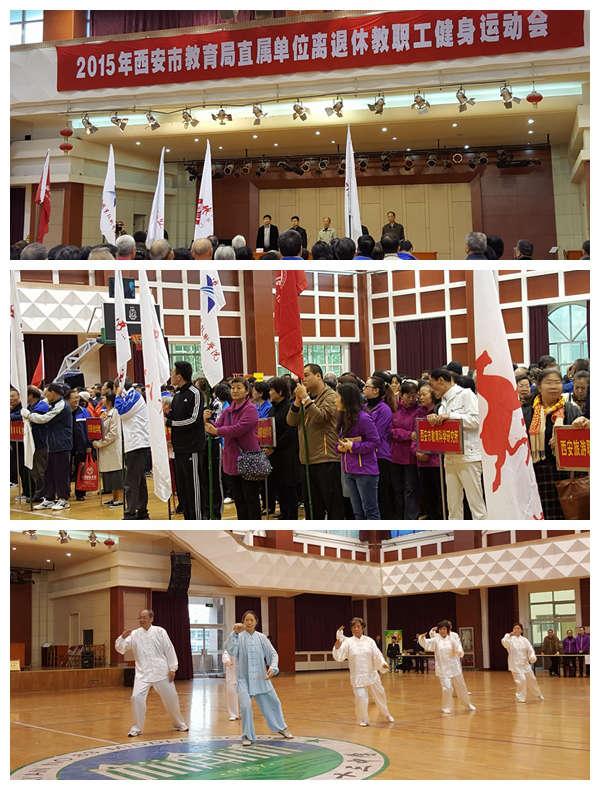 本次运动会在西安市83中学举办,西安市教育局副局长赵春平等领导出席了开幕式。开幕式上,十二个单位的团体项目比赛精彩纷呈,掌声不断。我院离退处选送的《32式太极拳》及兄弟单位的《健身广场舞》、《太极扇》、歌伴舞等表演,赢得了现场观众的热烈掌声,将开幕式推向了高潮。