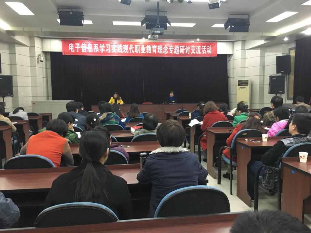 11月18日下午,电子信息系全体教职工在学院大电教开展学习实践现代职业教育理念专题研讨交流活动。12名教师进行了认真深入的交流发言。