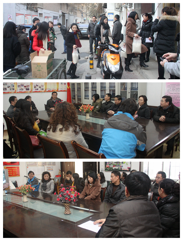 在随后与工农新村社区干部座谈时,机关后勤党总支书记张家琪简要回顾了2015年我总支与社区共同开展的“职业教育开放日”、“六一慰问社区儿童”等共建活动,转达了学院党委对社区的关心和在职党员进社区活动的重视,并表示我总支将继续按照上级要求,加强与工农新村社区对接联系,组织在职党员干部发挥专长,做好服务工作,尽力解决群众生活困难。工农新村社区主任卢玲珍感谢学院的关心和支持,希望继续加强联系,促进社区各项建设和为民服务工作扎实推进。