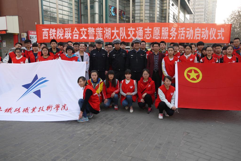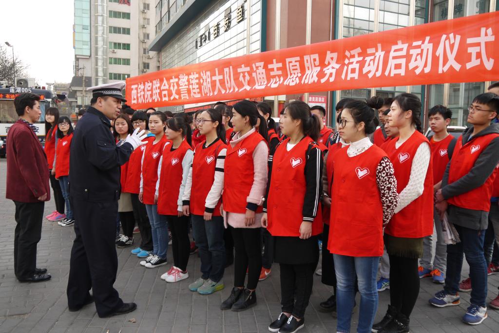 3月3日下午,学院团委联合莲湖交警大队举行2016年交通志愿服务项目启动仪式。莲湖交警大队队长王波,北关中队中队长毛斌峰、副队长姜军,我院团委书记仵崇智,团委办公室主任朱叶以及50余名志愿者参加了仪式。