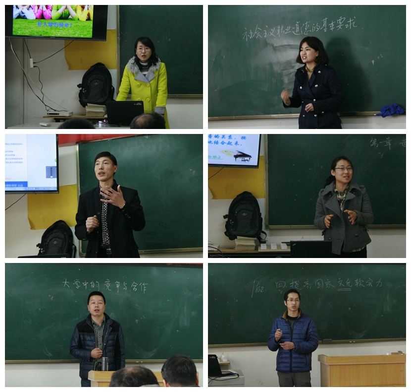 3月13日上午,思政部2016年青年教师课堂教学竞赛在龙首校区举行。思政部6名青年教师参加了教学竞赛,思政部主任景延鹏及全体教师现场观摩听课。