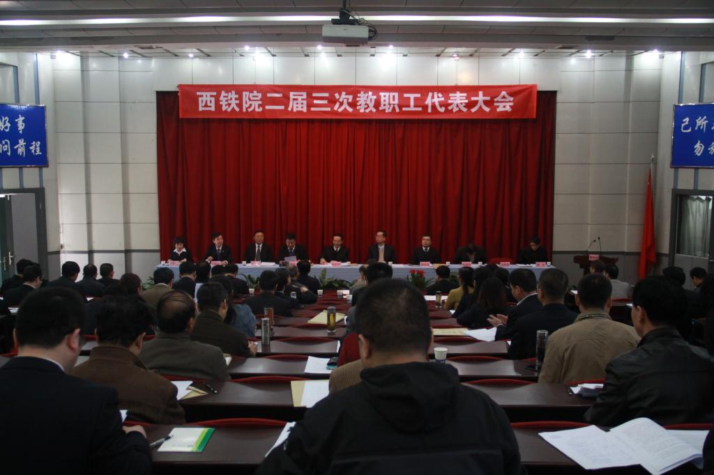3月27日上午9时30分,学院第二届三次教职工代表大会隆重开幕。开幕式由院党委副书记康敬远主持。学院党委书记安文中,院长田和平,党委副书记、纪委书记黄家昌,副院长邓耀斌、翁谦锁及大会主席团成员出席大会并在主席台就坐,本次大会的正式代表有87名,未当选代表的各党总支、系部、处室负责人列席会议。