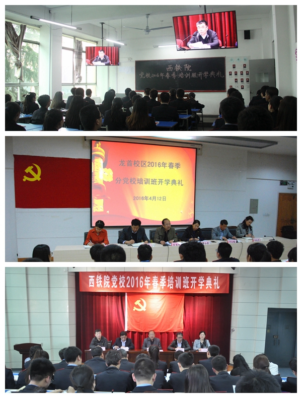 开学典礼上各分党校校长宣读了西铁院党校《学员管理办法》和学院党校2016年春季培训班课程安排。其中授课十讲,内容分别是:中国共产党的光辉历程和伟大成就,中国共产党的性质和宗旨,中国共产党的指导思想,中国共产党的最高理想和现阶段的奋斗目标,中国共产党的组织制度、纪律和作风,共产党员的权力和义务,入党的基本条件和程序,以实际行动争取做一名合格的共产党员,共产党人应牢固树立社会主义核心价值观,维稳与青年成长。在党校培训班授课期间各分党校将按计划组织三次集体讨论、一次社会实践活动和一次心得体会交流活动。