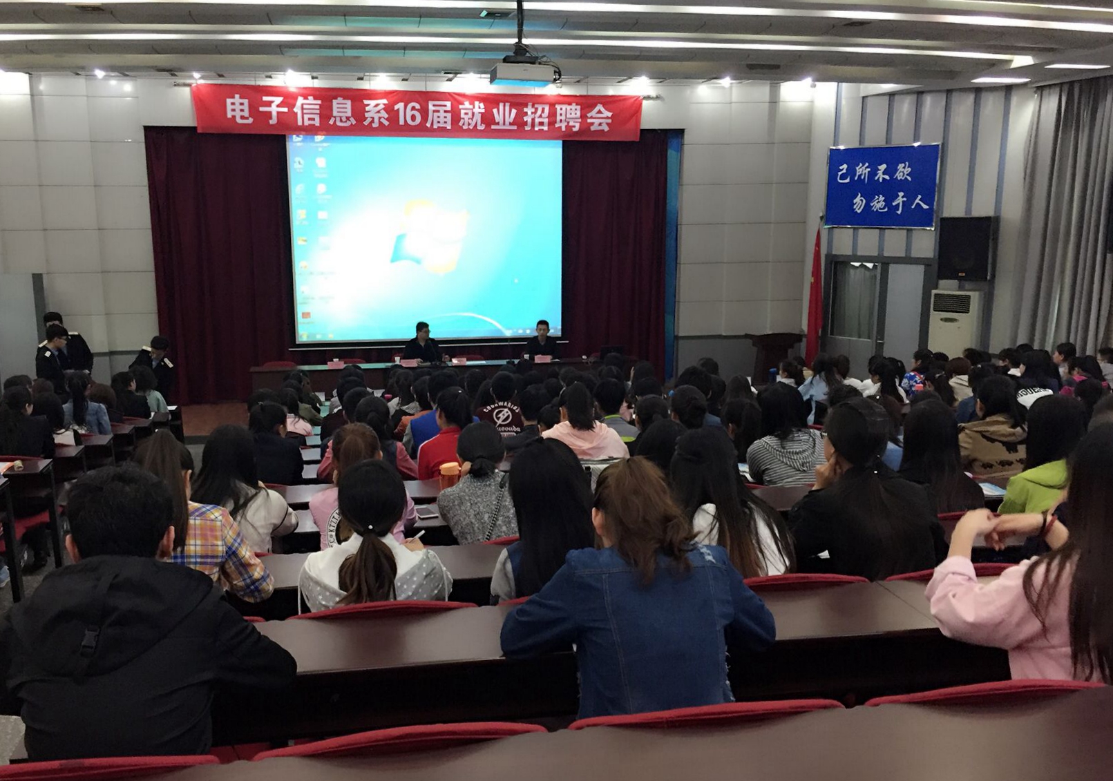 4月14日,电子信息系在阶梯教室组织召开了16届未就业学生推荐会,会议由电子信息系党总支书记张伟敏主持。针对16届未就业学生情况特殊、女生多、基础大等特点,电子信息系多次组织召开了未就业学生座谈会,了解到了每一个未就业学生的基本情况,并根据学生特点,主动走出去、联系企业。为未就业学生出主意、想办法,尽一切能力提供可能的就业机会。