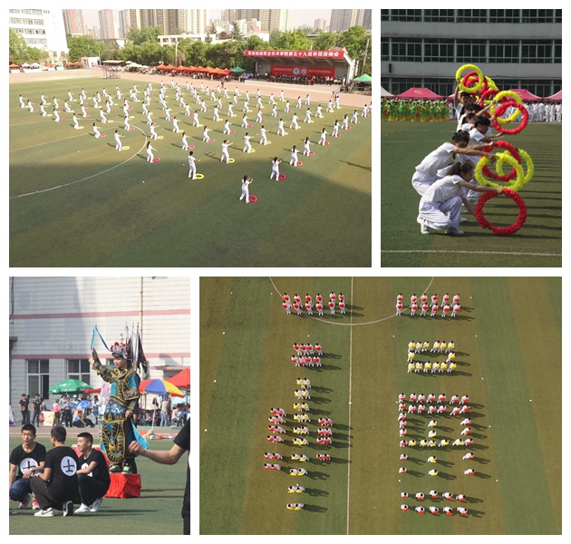 伴随着活力动感的音乐,团体操表演正式开始。交通运输系的《交运风采》、电子信息系的《太极与青春的对话》、电气工程系的《茉莉花》、牵引动力系的《中国风》、机电工程系的《中华棋魂》、龙首校区的《锦绣中国》以及临潼校区的《乘梦飞翔》等具有鲜明时代特色的表演,不仅为本届运动会献上了一份丰厚“贺礼”,也表达着他们心中对我院60岁生日的美好祝福!