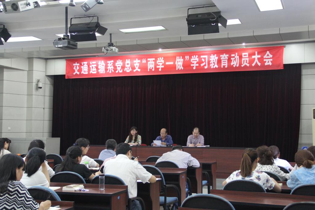为贯彻落实学院党委关于《在全院党员中开展“学党章党规、学系列讲话,做合格党员”学习教育实施方案》的通知要求,交通运输系党总支于5月4日下午在学院大电教召开“两学一做”学习教育动员大会,就“两学一做”学习教育做出具体安排。系部全体党员参加了会议,会议由系党总支组织委员薛青娜主持。