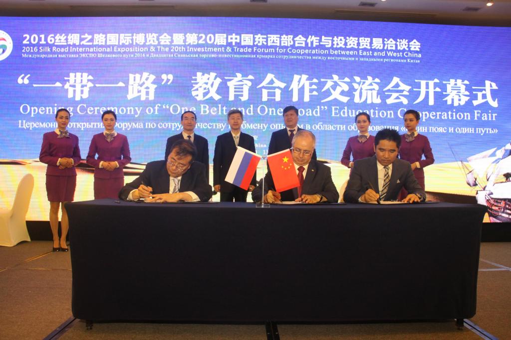 经陕西省人民政府批准,报教育部备案,由我院和俄罗斯圣彼得堡国立亚历山大一世皇帝交通大学合作举办的“国际交通学院”,于5月13日在“一带一路”教育合作交流会上隆重揭牌。
