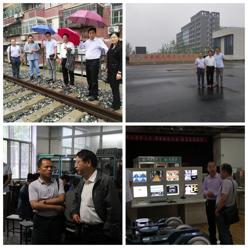 在我院牵引动力系主任李益民和临潼校区主任熊奇、副主任王秀丽陪同下,张建军和穆阿立在雨中参观了临潼校区土木工程系桥隧、无砟轨道、工量具等实训基地,还赴学院新校区认真观摩A01组团设计、建设、装修以及未来教室、实训室和办公场所布置等情况,并参观了学院铁道机车、城轨车辆、动车组检修技术三个专业的实训基地。参观过程中,双方就专业建设、实训基地建设、实验实训设备管理与维护、顶岗实习、师资培训、教学改革以及新校区规划建设等方面进行了认真交流。