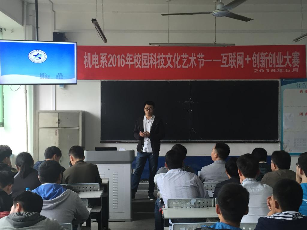 近日,机电工程系首届“互联网+”创新创业大赛圆满落下帷幕。经过一个半月的动员、筹划、培训、申报工作,共收到来自全系15个在校班的26个“互联网+”创新创业项目。经过设计方案评审、PPT现场展示两个环节的评比,最终,2014级机电一体化专业学生贺旺主持设计的“易乐学车”和铁道车辆专业申伟宏主持设计的“E家装”两个项目获得了大赛一等奖。
