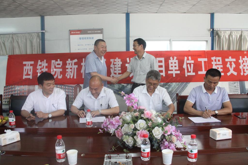 6月16日上午,我院新校区建设项目单位工程交接仪式隆重举行。学院副院长、新校区接收管理办公室主任赵六杰和相关部门负责人,西安建工集团副总经理梁雁和代建、施工单位负责人,西安茂华工程建设监理有限公司总经理秦心海、总监雷向阳等参加仪式。