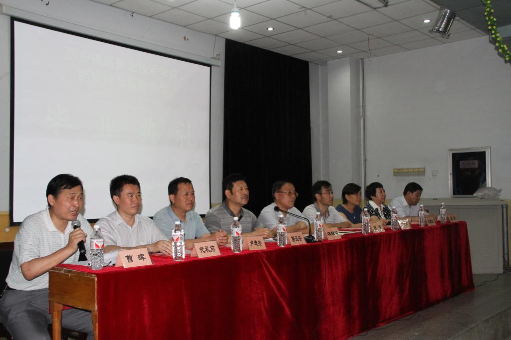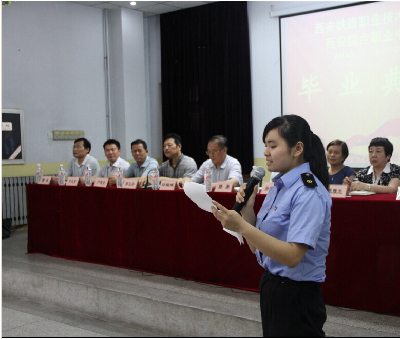 6月24日上午,学院在西安综合职业中专举行2013级“三、二连读”中职段毕业典礼。学院副院长邓耀斌、教务处处长滕勇、学生处处长卢进安、电子信息系主任孙津平、机电工程系主任代礼前、机电工程系党总支书记张雅兰,综合职专校长郭玉安、副校长屈宏、曹晖出席毕业典礼。典礼在综合职专大礼堂举行,曹晖主持。