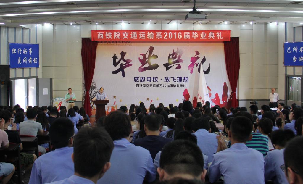 7月6日上午,交通运输系在院本部阶梯教室隆重举行2016届学生毕业典礼,系主任韩买良、系党总支书记李栋、学工办主任王焕学、2016届辅导员班主任和400余名毕业生代表参加了此次活动,王焕学主持了毕业典礼。