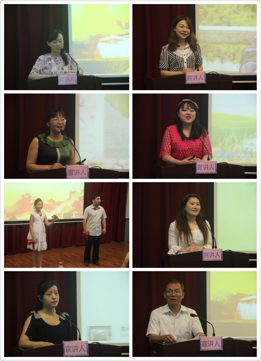 群众宣讲团由西安市教育系统各单位的一线教师组成。报告会上,来自西安市第九十中学的王江老师以《教师职业,无悔的选择》为题讲述了自己从教以来在教师岗位的辛劳付出和无数收获;莲湖区庆安小学的孙小群老师以《两张照片引发的思考》为题声情并茂地分享以自己儿时两张不同时期的照片的对比引发的对中国时代的变迁,国家经济实力、教学资源的迅速发展的肯定;新城区西一路小学的陈静老师以《出席报告会让青春在这里闪光》为题生动地讲述了自己作为一名小学教师的心路历程,感谢教师职业点缀了自己的青春;碑林区建国路小学的学生马雨晨和她的老师冯岩以一段快板说书《我是祖国新一代》唱响了新一代小学生对社会主义核心价值观的理解和崇尚;碑林区大学南路小学的程雅旎老师以《追求的生命是美丽的》为题讲述了自己和一名身体有缺陷的“特殊”学生的故事,与其相处的过程中程雅旎老师感受到了他的孤独也感受到了他的可爱,程雅旎老师认为所有的生命不论健康残疾都是美丽的;灞桥区红旗中心校的张莎老师以《一路坚守与梦想同行》讲述了常家湾小学的一名教师 在艰苦的教学环境中的无私奉献,让人动容;市教育局驻周至县四屯镇下三屯村党支部第一书记王西京同志在最后讲述了赵博同志的先进事迹,赵博同志身为党员的无私精神让在场听众无不感动,全场掌声阵阵。