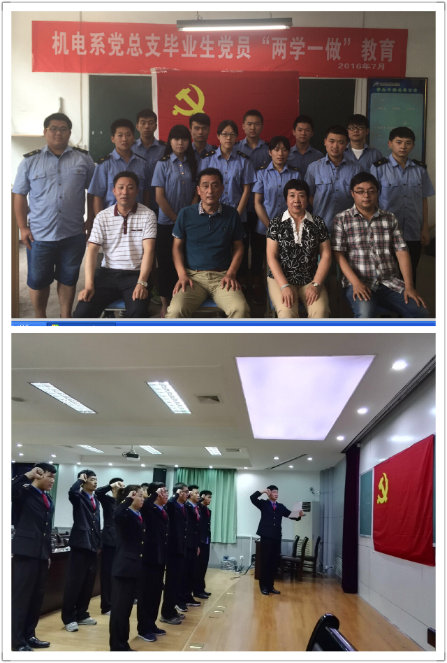 各总支还认真组织了新党员入党宣誓仪式,全体预备党员站在党旗下进行了庄严的入党宣誓,老党员重温了入党誓词。各党总支为新党员配发了党徽,颁发了预备党员通知书。宣誓仪式上各党总支负责人对所有参加入党宣誓的新党员提出了明确要求和希望。交通运输系党总支利用毕业生党员教育大会强调了如何加强党组织纪律观念的教育;电子信息系党总支召开了毕业生党员大会, 结合“两学一做”学习教育,为毕业生党员上了一次党课,强调了毕业生党员要发挥党员先锋模范作用,在各自的岗位中建功立业;电气工程系党总支在毕业生党员教育大会上要求毕业生党员甘于吃苦,乐于奉献; 牵引动力系党总支在毕业生党员集中教育活动中,明确了做合格党员的标准,并组织了入党宣誓和重温入党誓词活动; 机电工程系党总支结合“两学一做”学习教育,举办了“两学一做”知识测试,发放了入党纪念卡,举行入党宣誓仪式;临潼校区党总支组织毕业生党员开展了“两学一做”学习教育集中培训和入党宣誓仪式,强调毕业生党员理论知识的掌握,覆盖率达到100%。