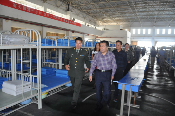 到基地后,黄家昌详细听取了驻地负责人郭小莉就开训以来的训练情况、活动开展情况、连队建设、病号管理、宣传报道、内务整理等工作进行的汇报后,对此次军训已经取得的阶段性成果给予了充分肯定,并对接下来的军训组织工作提出了三点希望:一是要向解放军学习“带兵”的经验,通过这次军训学习带好一个班集体,使其具有强大的凝聚力;二是要向解放军学习“精气神”,通过这次军训的历练,让班集体保持一种蓬勃向上的精神面貌;三是要珍惜军训生活,以更高的标准完成好后期的训练工作。基地领导也高度评价了我院严谨求实、扎实细致的军训团工作,以及参训学生精神饱满的训练状态,表示将继续科学施训、严格管理,圆满完成后续军训任务。随后黄家昌一行深入到学生宿舍区、食堂和医务室进行了走访,检查了学生的内务整理情况,了解了师生的饮食和医疗保障情况,看望了病号连的学生,并与部分学生进行了亲切交谈,对各二级学院在紧张的军训期间,创办的一块块精美展板表示了赞赏和鼓励。
