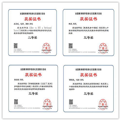 我院基础部王慧媛、包燕、郭珍、刘丹等老师合作完成的作品《How to DIY a Outbound Travel?》获得高等教育组课件类全国二等奖;机电工程系邹俊俊、冯岩老师的作品《机构运动简图绘制》、牵引动力系樊润洁老师的作品《可编程控制器(三菱FX系列)步进指令与状态编程》获得高等教育组课件类全国三等奖;电子信息系林岚老师的作品《我要变身十进制》获得高等教育组微课类全国三等奖。我院推荐的参赛作品,不仅技术手段先进、内容资源丰富、结构合理、特色鲜明,而且紧密配合课堂教学,具有很强的示范教学作用,经过技术测试、专家评审,最终取得了佳绩。
