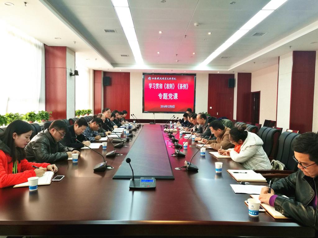 12月8日下午,副院长邓耀斌同志围绕党的十八届六中全会精神和《关于新形势下党内政治生活的若干准则》、《中国共产党党内监督条例》为机电工程系党总支、教研学工党总支教务党支部全体党员做了专题党课。并于12月6日下午,为教研学工党总支教辅党支部全体党员做党课辅导。