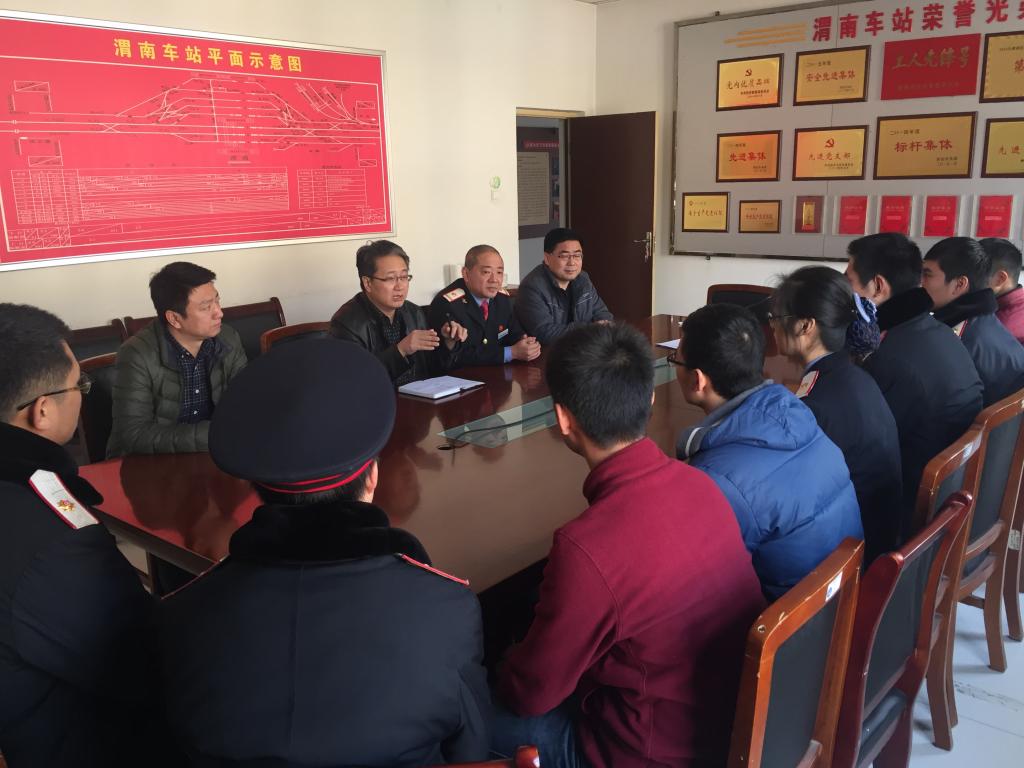 为进一步加强对校区2017届实习学生的跟踪指导,紧密保持与国铁用人单位、非铁路企业的实时联系和校企交流,近期,临潼校区主任熊奇、党总支校书记张国邦、副主任王秀丽、学工办主任朱栋夫以及实习指导教师、辅导员一行分别赴西安图语信息科技有限公司、西安德润测绘科技有限公司和西安铁路局西安车务段渭南车站等实习单位看望慰问实习学生,并通过参观实习、住宿场所和召开学生座谈会等形式,摸排掌握学生思想动态和现场生活、学习和工作情况。