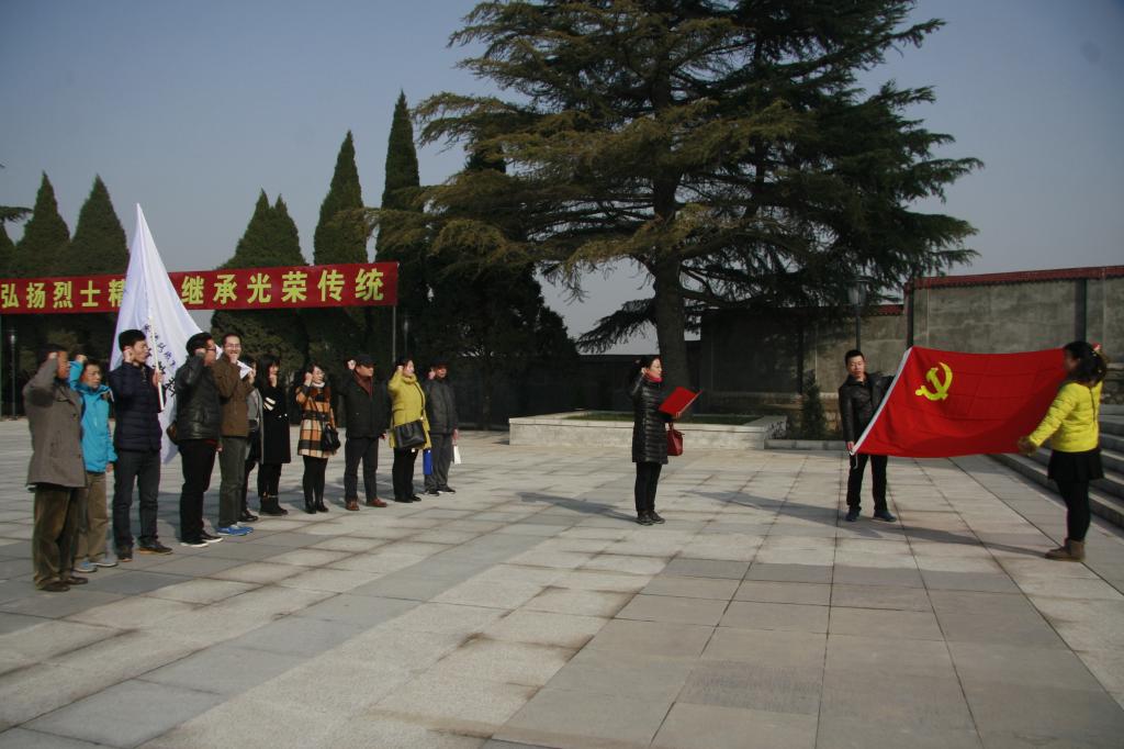 挂牌仪式后,史小宏和李晓娟带领思政教科部全体教师共同参观了渭华起义纪念馆陈列大厅、西北工农革命军军委指挥部、中共华县县委办公楼旧址、西北工农革命军军委扩大会议遗址、烈士殉难井等革命遗址,史小宏亲自进行讲解。在展馆中,陕东赤卫队土枪,刀和矛等武器,给大家留下了深刻的印象。在当年的渭华起义指挥部大院,国家一级文物----用青砖和鹅卵石铺成长20米,宽2米的巨幅标语:"同志们赶快踏着先烈的鲜血前进啊!!!" 带给大家强烈的震撼和感动。参观最后,在支部书记苟红侠的带领下,全体党员在渭华起义烈士纪念塔下重温了入党誓词,集体向革命先烈鞠躬致敬,并献上鲜花缅怀先烈。