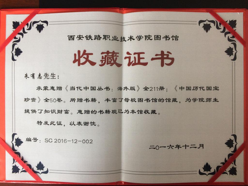 饮水思源,朱有志先生的捐赠表达了对母校的深厚感情,他的爱心极大地丰富了图书馆的馆藏资源,弘扬了热爱文化事业,造福后学的精神!图书馆对朱有志所做的贡献深表感谢和敬意,并向他颁发了收藏证书。