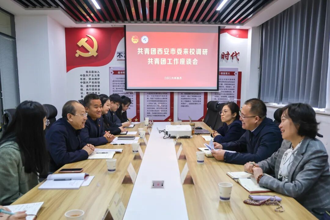 4月2日,共青团西安市委书记徐辉、团市委办公室及学少部相关负责同志一行来我院调研指导共青团工作。学院党委副书记任治军,院团委成员及各二级学院团总支书记参加调研座谈会。会前,学院党委书记赵春平向徐辉书记介绍了学院的办学育人成效和下一步发展思路,对团市委长期以来的关心支持表示感谢。双方围绕学院发展及共青团工作交换了意见。随后,徐辉一行实地参观了校史馆、机电工程学院全国样板支部、陕西省创新创业教育实践基地以及“...