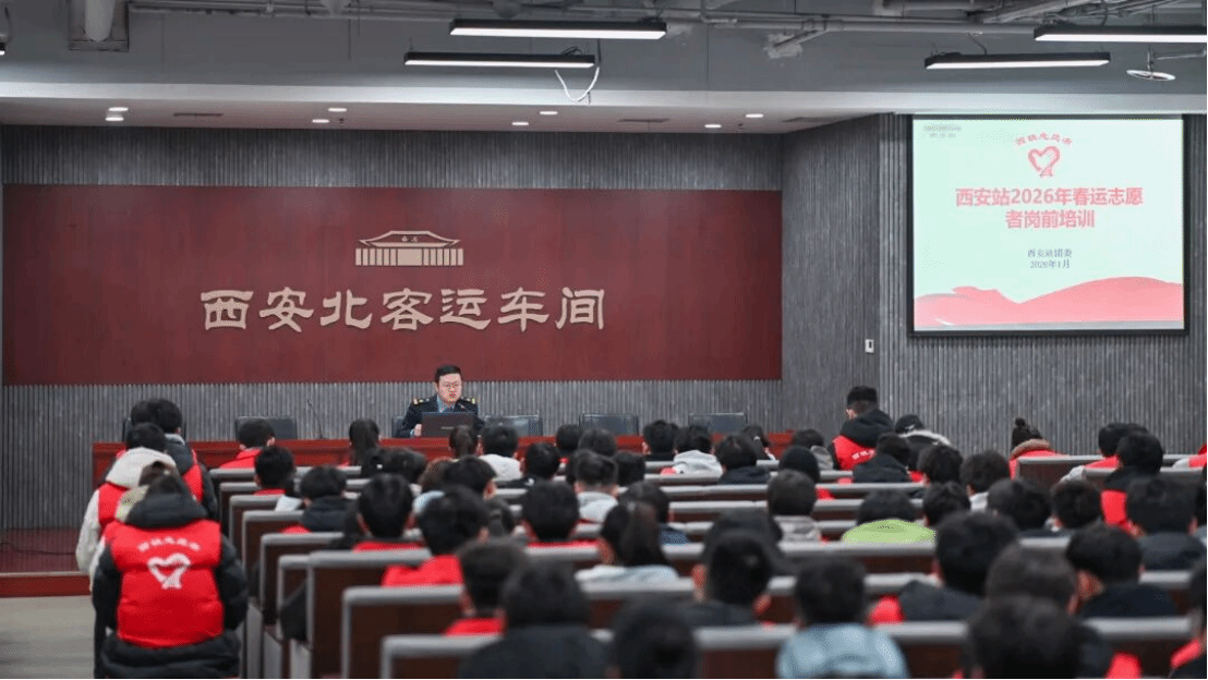 1月31日上午8时,全体志愿者在完成期末考试并经过短暂休整后,准时于各服务车站集结报到,并接受系统岗前培训。学院343名志愿者服务于西安局辖内西安站、西安北站、宝鸡南站、宝鸡站、杨凌南站、汉中站、安康站、渭南北站、延安站、榆林站等十个车站;36名志愿者服务于兰州局辖内兰州站、兰州西站、银川站、庆阳站、天水站、天水南站、武威东站、定西北站等八个车站。2026年春运于今日(2月2日)正式启动,学院志愿者们也已全面进入服务状态。西安局343名志愿者今日起正式上岗,兰州局36名志愿者将于明日投入服务。他们将以专业、热情、细致的服务,正式开启服务2026年铁路春运志愿工作的序幕,在实践中诠释青年担当。