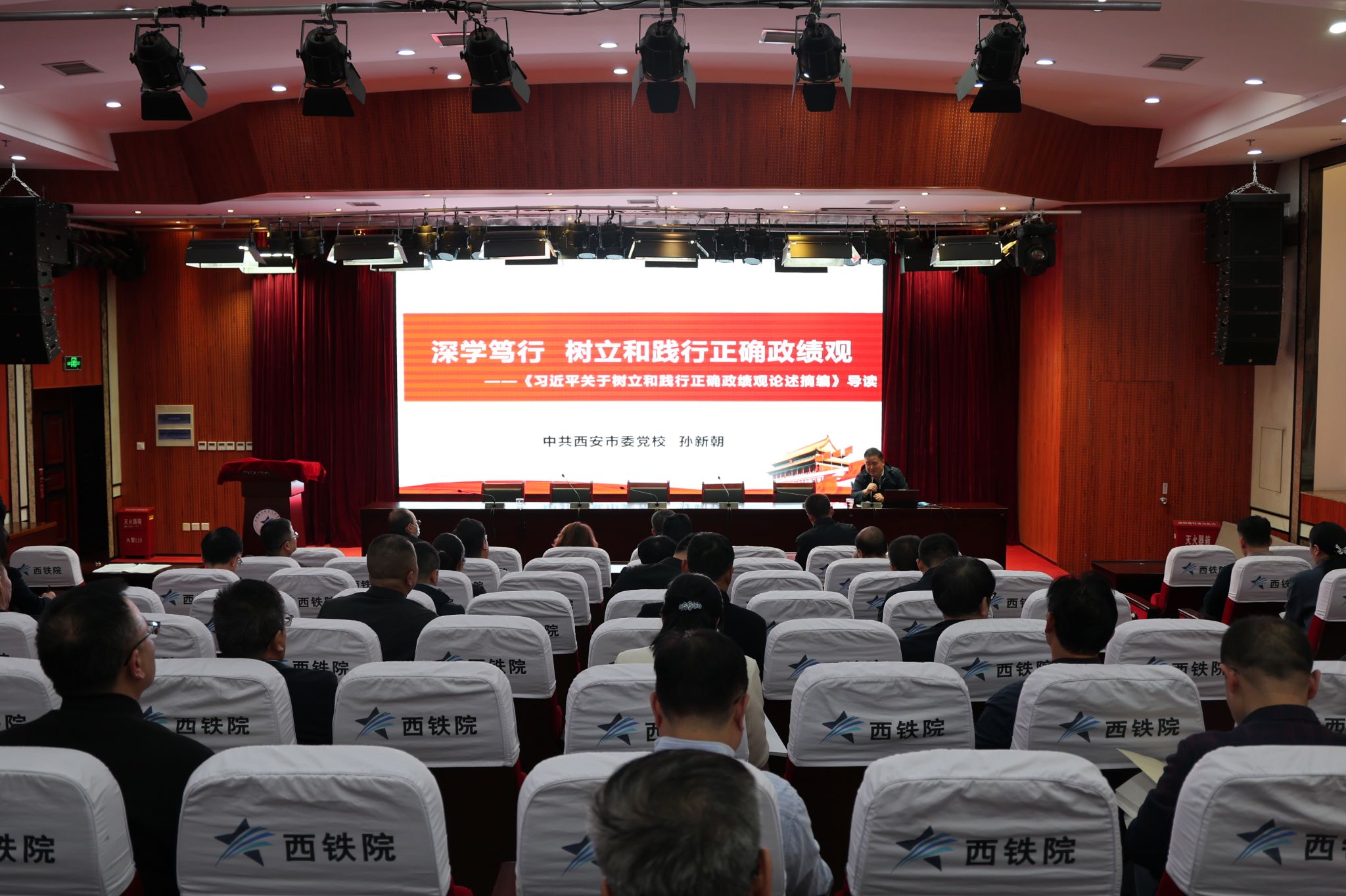 4月1日至3日,西安铁路职业技术学院在港务校区举办了树立和践行正确政绩观学习教育读书班。学院领导班子成员、全体处级干部通过集中学习、专家辅导、分组研讨、交流发言等形式,深入学习领会了习近平总书记关于树立和践行正确政绩观的重要论述,进一步校准发展坐标、凝聚实干共识。