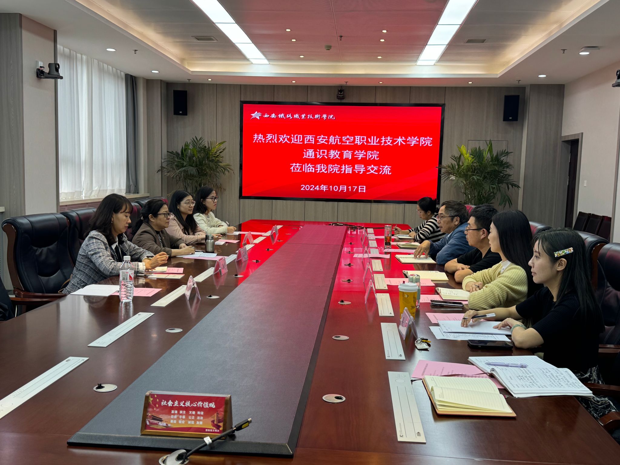 西安航空职业技术学院老师针对他们教学过程中出现的问题和改革设想与我院教师进行了深入的探讨。通识教育学院刘蕊丛院长表示,双方交流的热点是我院近年来公共课改革的成效与影响,通过交流,他们进一步了解了我院近年来以赛促教、以赛促改的做法,这将对他们学校的公共课改革产生积极有益的启发。在两个多小时的热烈交流中,双方增进了了解,明确了推动公共基础课教学工作的思路,交流会在友好融洽的氛围中圆满结束。
