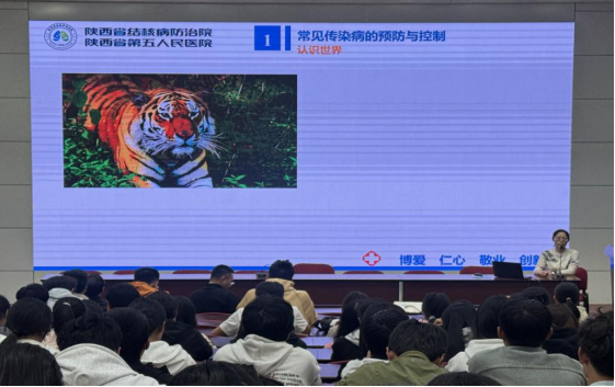 讲座上,贺晨艳用朴实的语言、科学的数据、鲜活的案例给大家科普了结核病和艾滋病的病因、传播途径、症状,诊断、治疗和管理以及对身体的危害,重点讲解了学校传播的特点以及作为大学生该如何预防等相关知识点。同时呼吁同学们要养成良好的卫生习惯,保证充足睡眠,加强体育锻炼,提高抵御疾病的能力。现场师生充分互动,大家在生动有趣的课堂中收获满满。