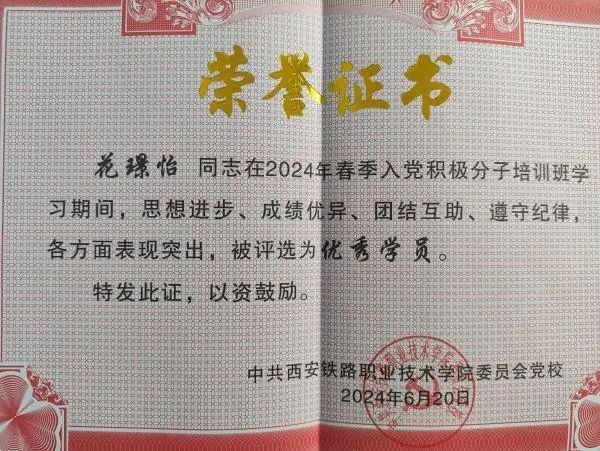 花璟怡,土木工程学院工程造价专业2301班学生,共青团员。在校期间刻苦学习,上一学年个人成绩专业第三,同时担任班级团支书,学生会综合部副部长。荣获国家励志奖学金、三好学生、年级学习标兵、优秀共青团员干部等荣誉称号。在努力学习的同时积极组织参与学院开展的各类校园活动与志愿服务活动,提升自我综合素质。