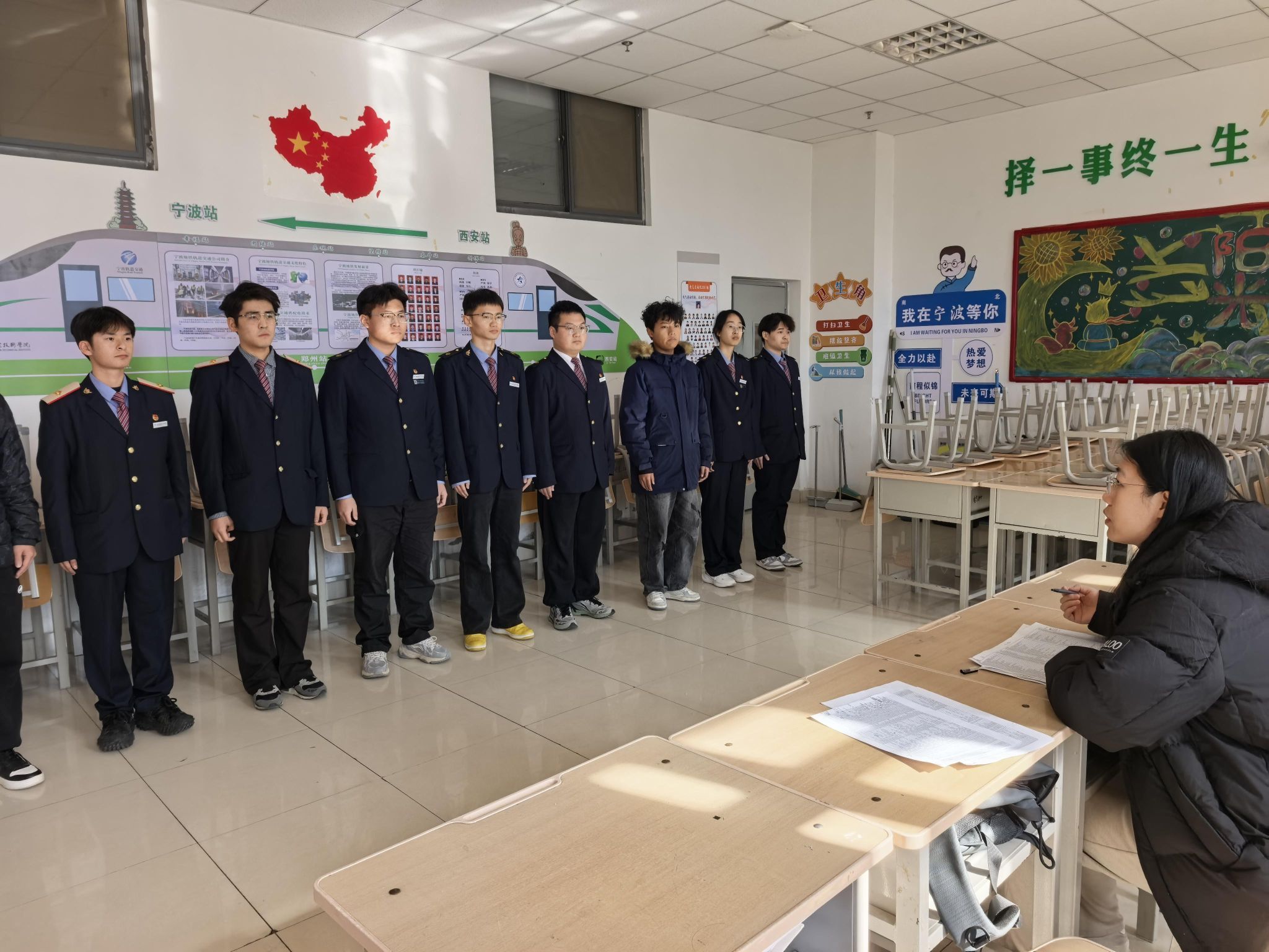 面试现场秩序井然,身着整齐制服的电气学子们列队有序、精神饱满,以积极昂扬的姿态迎接考核。面对评委老师围绕志愿服务认知、应急处理能力、铁路专业知识等核心维度提出的问题,同学们沉着冷静、从容应答,既展现出扎实的专业知识功底,更传递出投身春运志愿服务、践行铁路人责任担当的坚定决心,充分彰显了电气学子的良好风貌。