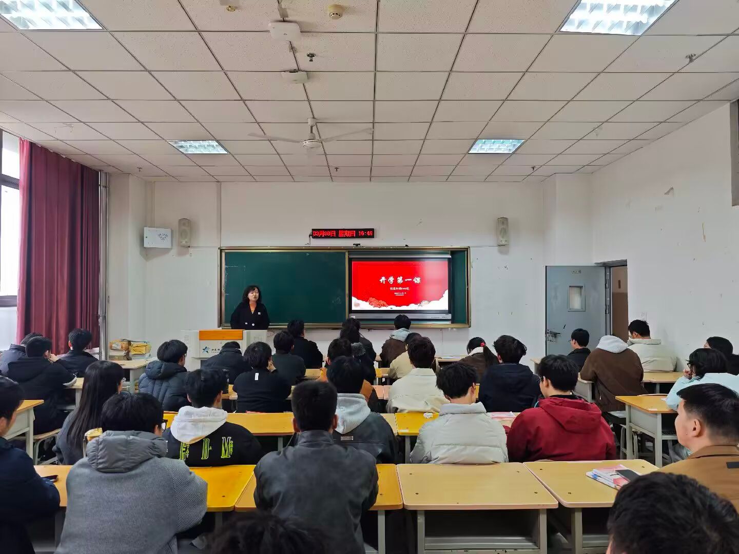 3月8日晚,学院“开学第一课”主题教育班会在各班级教室有序开展。党委组织部部长张伟敏、机电工程学院党总支书记宋永兴、机电工程学院副书记韩臻深入班级,与学生展开"面对面·心贴心"交流,细致询问返校情况、假期收获、学业规划及生活需求,勉励大家快速调整身心状态。张伟敏以"三问三思"(问假期收获、思成长方向;问学业规划、思行动路径;问生活需求、思解决之策)引导学生立足轨道交通行业发展趋势,制定"长短结合"的成长计划;宋永兴强调"三个转变":从假期松弛状态向学习专注状态转变,从被动接受向主动规划转变,从个人单打独斗向团队协作共进转变;韩臻以“五个聚焦”为引领,从聚焦目标规划、聚焦状态调整、聚焦习惯养成、聚焦团结协作、聚焦安全纪律五个方面,对同学们提出殷切期望,勉励大家快速从“假期模式”切换至“学习状态”,在互助共进中锤炼能力、实现全面成长。